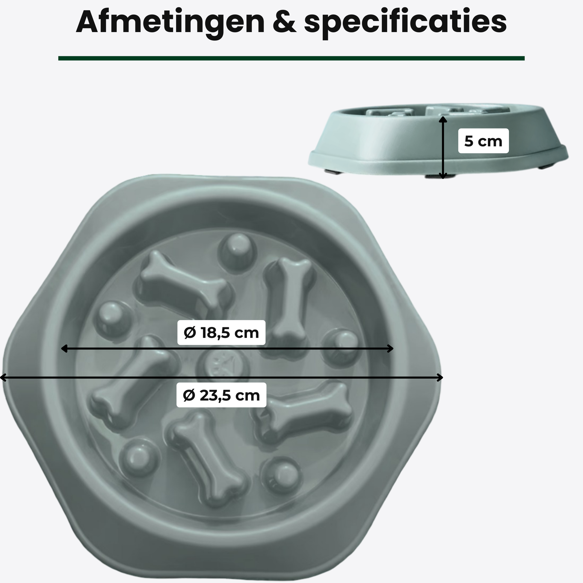 Specs in ’t kort: 23,5 × 18,5 × 5 cmPP (BPA-vrij) • geschikt voor nat- & droogvoer.